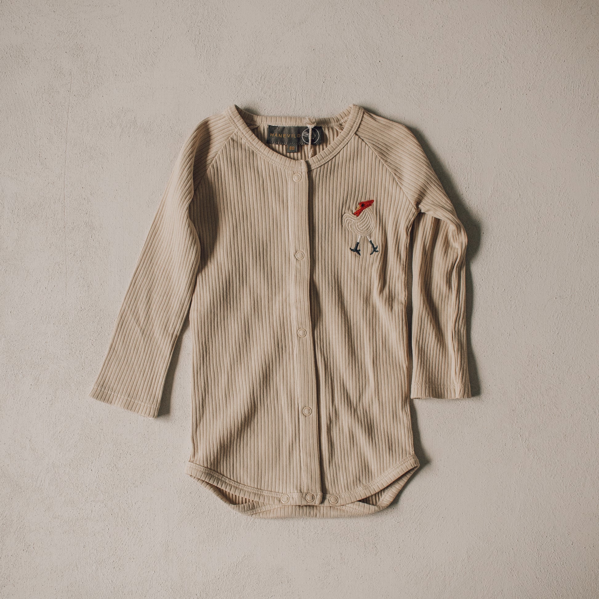 A beautifully soft ribbed romper in a warm cream tone, perfect for everyday wear or special moments. Made with comfort in mind, it features long sleeves, a relaxed fit, and delicate ribbed texture for an effortlessly classic look. Easy to layer and easy to love — a staple piece for your little one’s wardrobe.