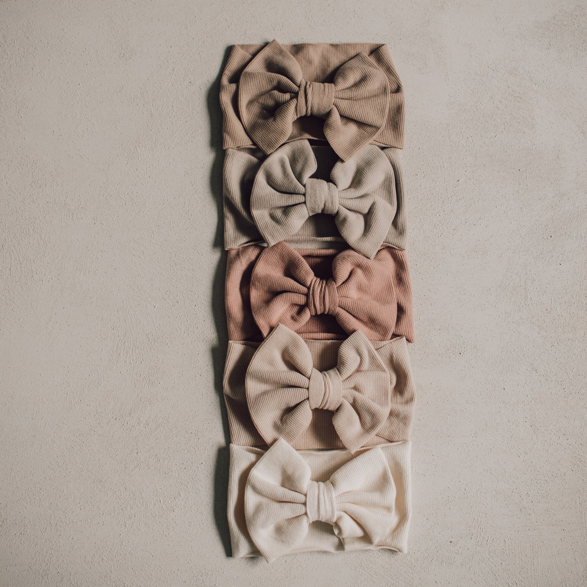 Super soft ribbed bow headbands, Newborn to 12months approx fit.