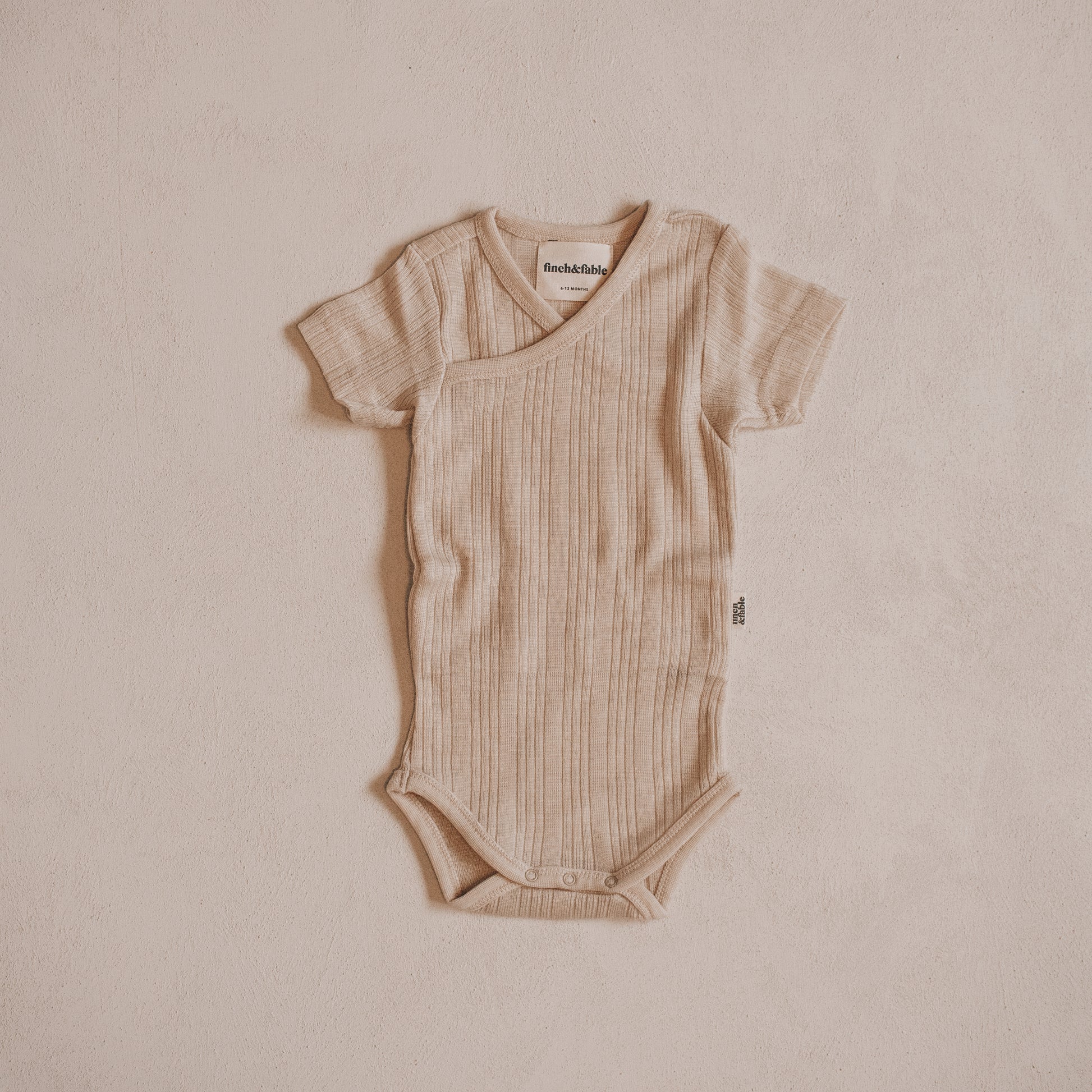 Keep your little one warm, comfortable and stylish in our beautiful ribbed wool-bamboo essentials. Our wool bodysuits have a cross-over design for easy on and off.